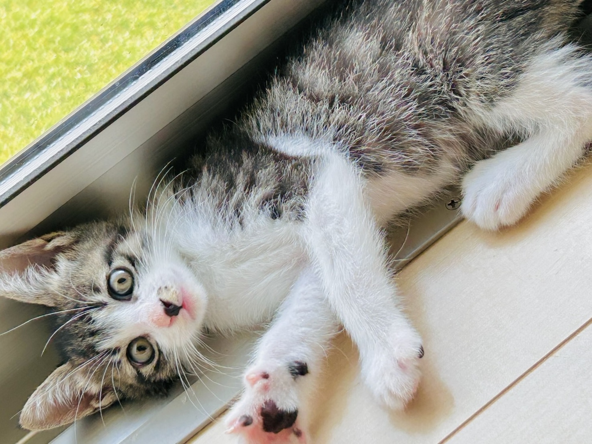 窓の隙間で日向ぼっこ!